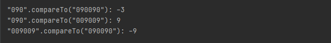 "090"의 경우 "090090" 앞 문자열은 같지만 길이가 달라지기 때문에 길이의 차이 값인 -3을 반환하는 것이고
