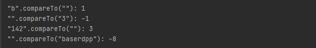 그래서 "142" 와 "blank"의 길이의 차이는 3이고 "blank"와 "baserdpp"의 길이 차이는 8로 0 - 8 이므로 -8을 반환한 것이다. 이제 이쯤에서 한번 테스트해봐야 할 것이 앞의 문자열은 같은데 길이가 다른 경우와 문자열도 다르고 길이도 다른 경우를 테스트해서 어떤 반환 값이 나오는지 살펴보려 한다.
