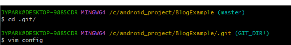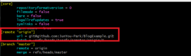 vim 또는 gedit과 같은 텍스트 편집 툴로 .git/config 파일을 실행 시키면 아래처럼 나온다.